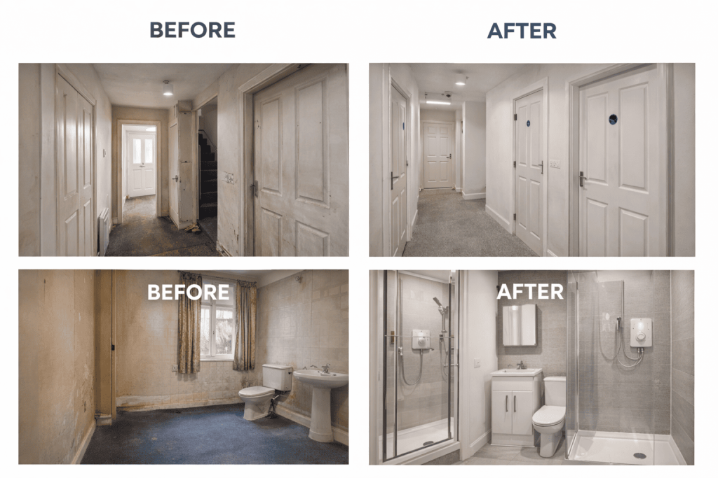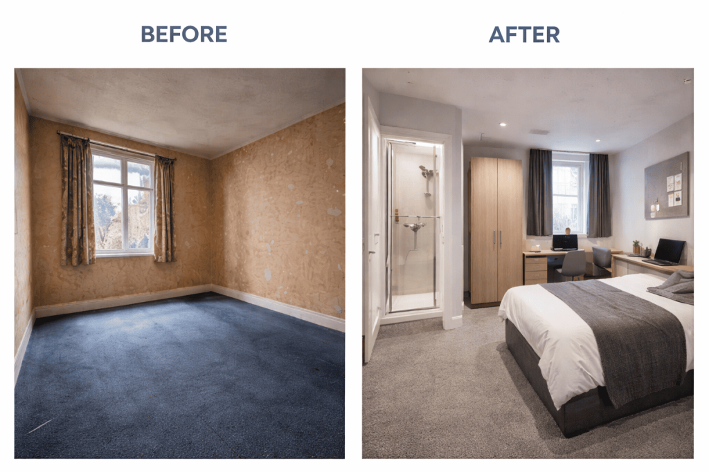 The client was an experienced landlord expanding into HMOs for the first time and required a compliant, inspection-ready conversion that would maximise rental income while meeting local authority standards.